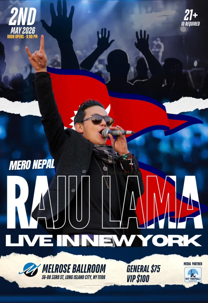 न्यूयोर्क SK — नेपाली सांगीतिक जगतका चर्चित गायक Raju Lama ले आगामी २ मे २०२६ मा अमेरिकाको New York City मा विशेष लाइभ कन्सर्ट प्रस्तुत गर्ने भएका छन्। कार्यक्रम Melrose Ballroom मा आयोजना गरिने आयोजकले जानकारी दिएका छन्। करिब तीन वर्षपछि लामाले पुनः न्यूयोर्कमा प्रस्तुति दिन लागेका हुन्, जसले यहाँ बस्ने नेपाली समुदायमा ठूलो उत्साह […]